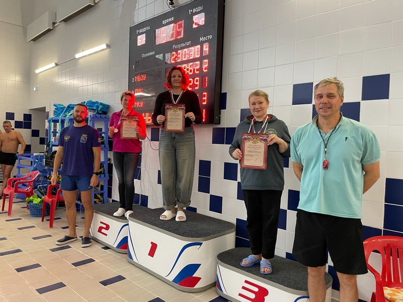 Дистанция 25м В\ст 45-54 лет Жен. 1 место - Газиева Татьяна 2 место - Гущина Марина 3 место - Седова Татьяна